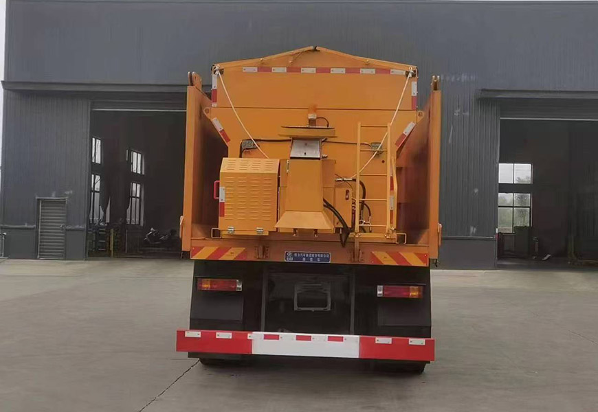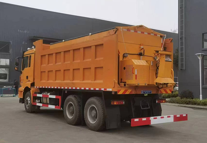 上裝配置 | 箱體采用優(yōu)質(zhì)碳鋼板,標(biāo)配10立方撒布機也可以選裝12立方,不銹鋼撒布機甩盤,撒布盤直徑550mm,撒布機采用 V 型料倉,結(jié)構(gòu)簡單可靠,使融雪劑自動落料,出料完全,無殘留,箭頭燈、篷布、過濾網(wǎng)、后爬梯。加裝3.5米雪鏟,可切換3.5米除雪滾刷(滾刷可選自帶動力或者液壓取力)。 |